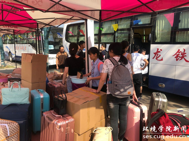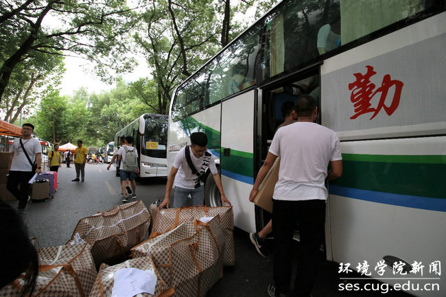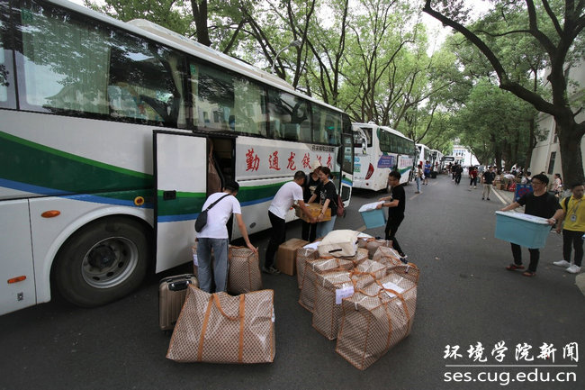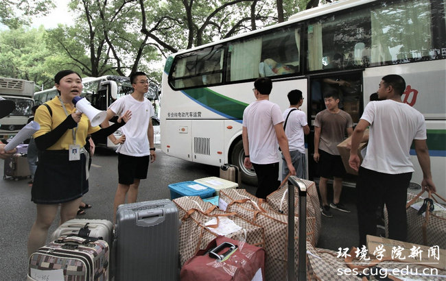 全体硕士生约370人分3批次共计27辆大巴从南望山校区装车前往未来城校区。
