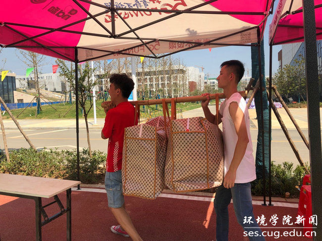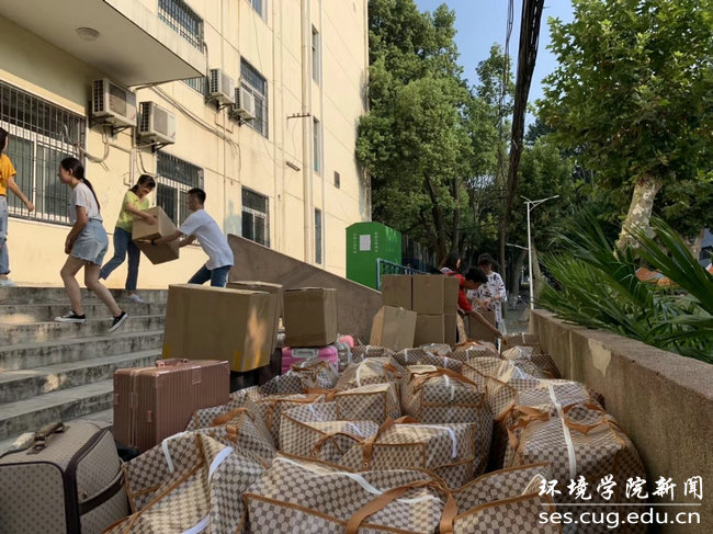 学工组全体老师各司其职,与同学们一起奋战在搬迁工作第一线。同学们不喊苦不喊累,班级男生主动帮女生承担搬行李重任,遇到有困难的同学都会伸出援助之手,充分体现环境人耐劳苦、讲奉献的精神。在帮助同学们搬运行李的队伍中,还能看到不少志愿服务的同学。2016级韩鹏同学刚从外地支教回来,主动请缨加入到搬迁队伍中。他忙前跑后,额头上、衣服上都是汗。他说:“能为同学们多做点志愿服务,一起劳动出出汗,很有意义。”