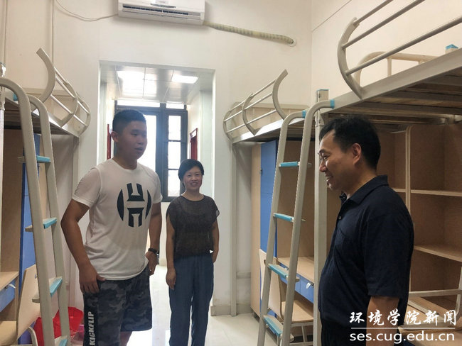 党委书记李素矿在未来城校区指导学生搬迁工作,叮嘱师生预防中暑,到学生宿舍走访看望。