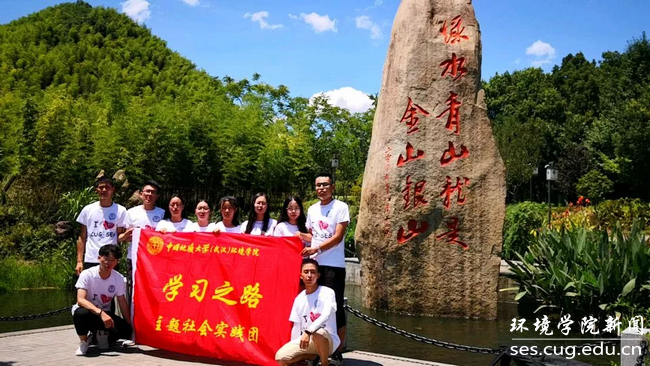 为深入学习“两山论”,探讨如何运用这一理论指引实践,2019年8月1日至8月5日,中国地质大学(武汉)张国旗班实践团一行11人在姜明敏老师的带领下来到“两山论”发源地——浙江省安吉县开展“学习之路”暑期社会实践活动,学习“两山”理论,探索绿色发展。