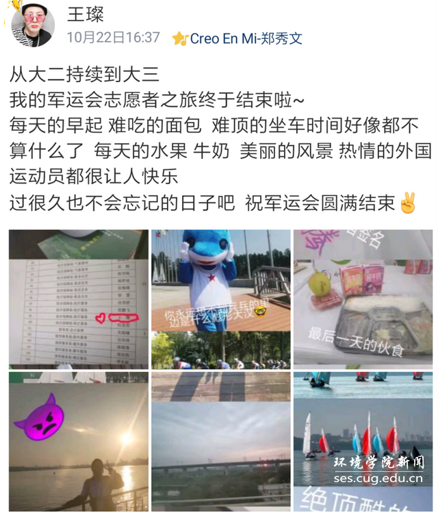 聚志愿力量,筑军运辉煌。一场场精彩比赛的背后是23万军运会志愿者“小水杉”默默的辛勤付出,这其中,46名来自bet365体育投注下载的“小水杉”,在岗位上尽职尽责,以最美的微笑迎接八方来客,用环境人的热情踏实出色地完成每一项志愿服务工作,为军运会的成功举办贡献着青春智慧与力量。