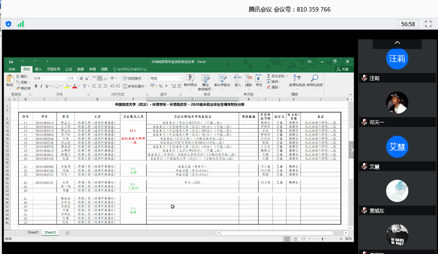 曾斌老师通报环境地质系教师与未确定毕业去向毕业生结对帮扶具体安排。