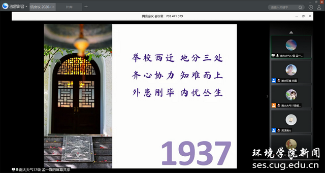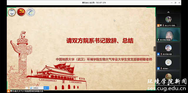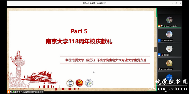 活动第五项,中国地质大学(武汉)为南京大学118周年校庆献礼,生物大气党支部全体成员打开摄像头,向他们表示了最真诚的祝愿:365体育投注-bet365体育投注下载