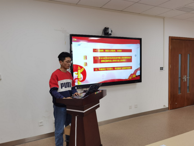 2018级学硕一班硕士研究生党支部柳璨同志作为领学主讲人,带领支部全体党员学习关于《巩固深化“不忘初心、牢记使命主题教育成果的意见”》,讲到为什么要开展“不忘初心、牢记使命”主题教育以及开展“不忘初心、牢记使命”主题教育的意义。我们要坚持用习近平新时代中国特色社会主义思想武装全党,强化理想信念教育和党性教育。