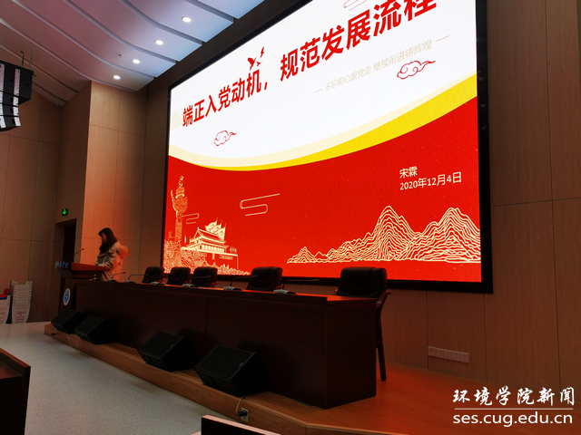 通讯员丁奎元  编辑耿婧)2020年12月4日,中国地质大学(武汉)第六十九期入党积极分子培训班暨bet365体育投注下载 第二十三期入党积极分子培训班第一讲在科教楼四108正式开讲,bet365体育投注下载 党建辅导员宋霖以“端正入党动机,规范发展流程”为主题展开授课。