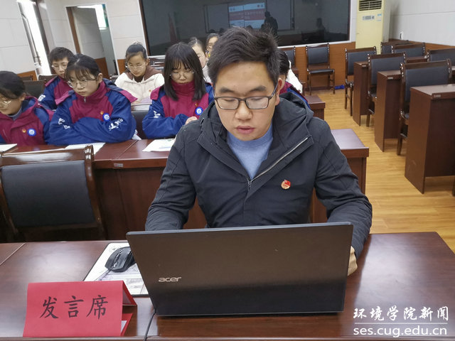 水文专业大学生党支部书记刘傲介绍党支部发展情况。他说,水文支部在bet365体育投注下载