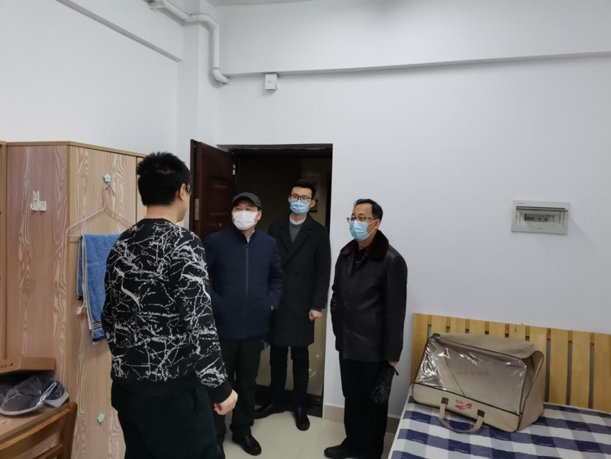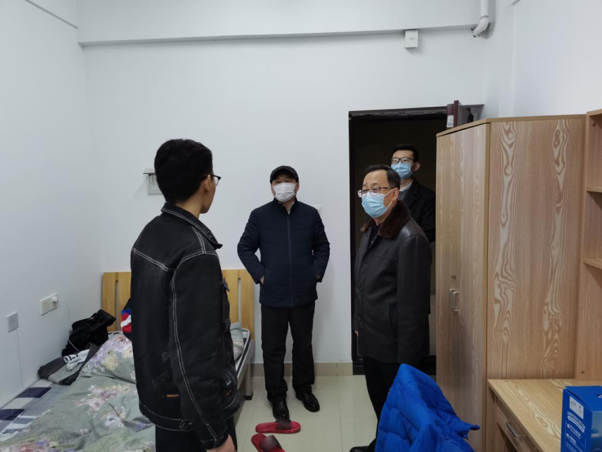 (通讯员王碧  编辑耿婧1月31日晚上,365体育投注 党委书记李素矿、院长马腾、党委副书记王海锋、团委书记王碧一行前往南望山校区丹桂苑走访宿舍,看望寒假留校学生。
