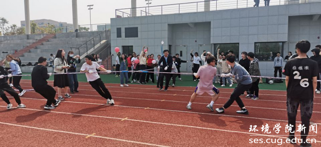 师生一起参加三向拔河