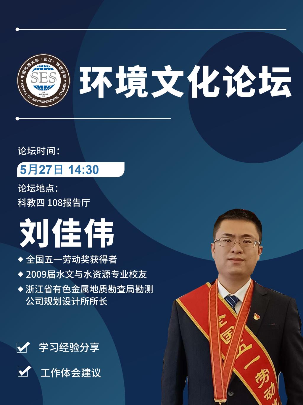 在2021年庆祝“五一”国际劳动节暨“建功‘十四五’、奋进新征程”主题劳动和技能竞赛动员大会中,bet365体育投注下载3位校友荣获“全国五一劳动奖章”。本期环境文化论坛,我们诚挚邀请了获奖者之一、来自bet365体育投注下载2009届水文与水资源工程专业的刘佳伟校友出席并为同学们分享学习和工作经验。