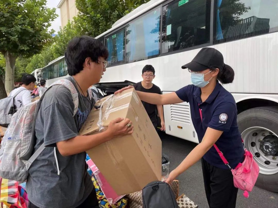 下午四点,2020级学生陆续到达未来城校区。下车后,由张国旗班同学积极主动的协助同学们卸下行李、同学们有序的传接行李、志愿者引导同学运送行李,大家互相传递运送,大大提升搬宿舍的效率。很多同学们不喊苦不喊累,班级男生主动帮其班级女生承担搬行李重任,遇到任何有困难的同学都会伸出援助之手,充分体现“环境人”耐劳苦、讲奉献的精神。