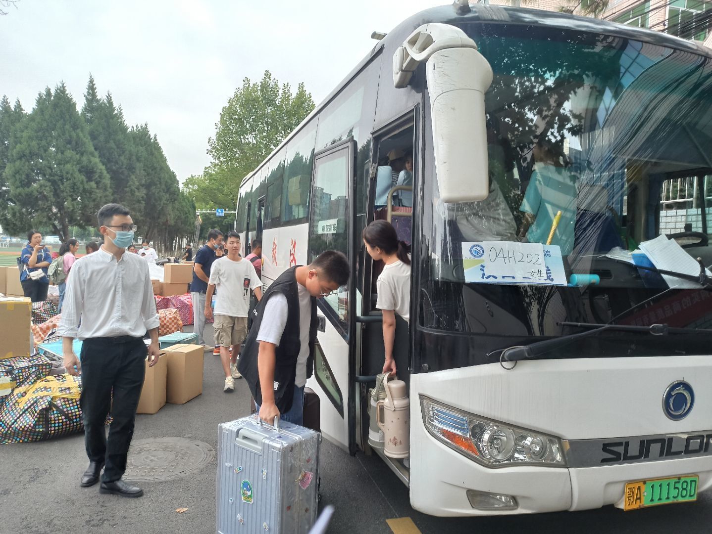 04H203班崔艳萍老师帮同学们搬运行李