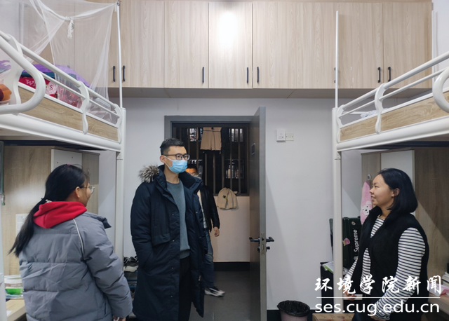 党委副书记王海锋、辅导员孟庆达一行走访南望山校区学生宿舍
