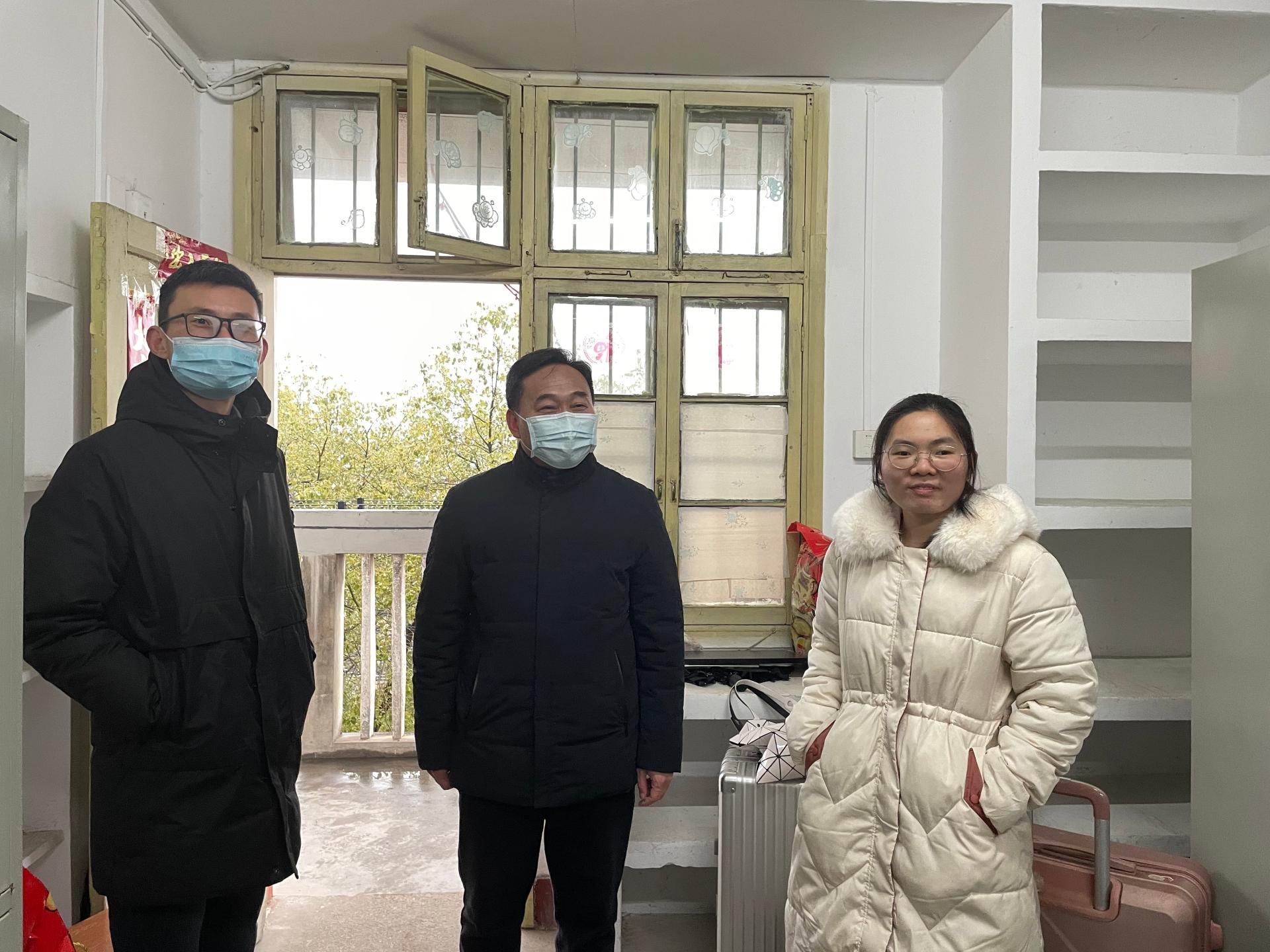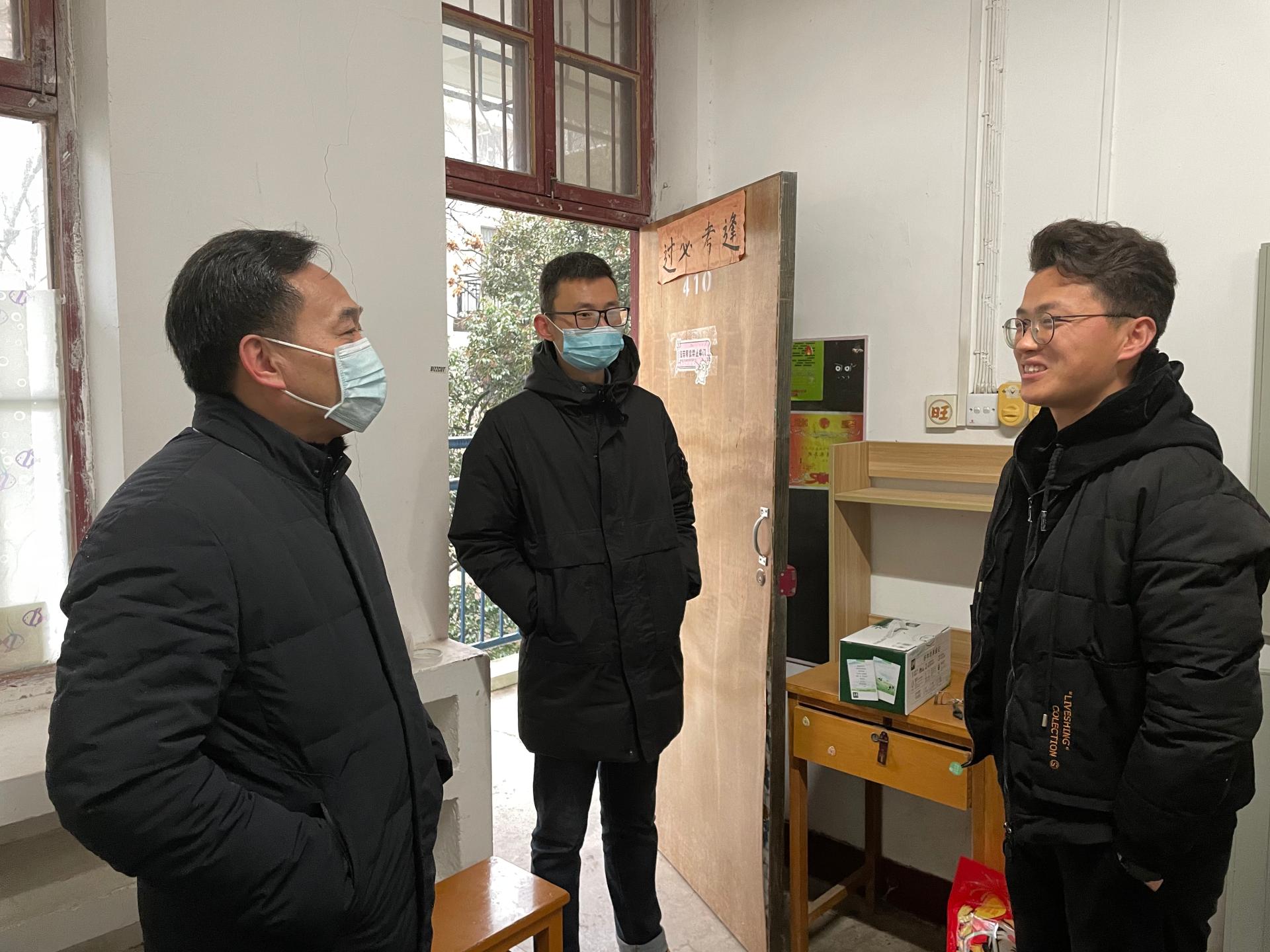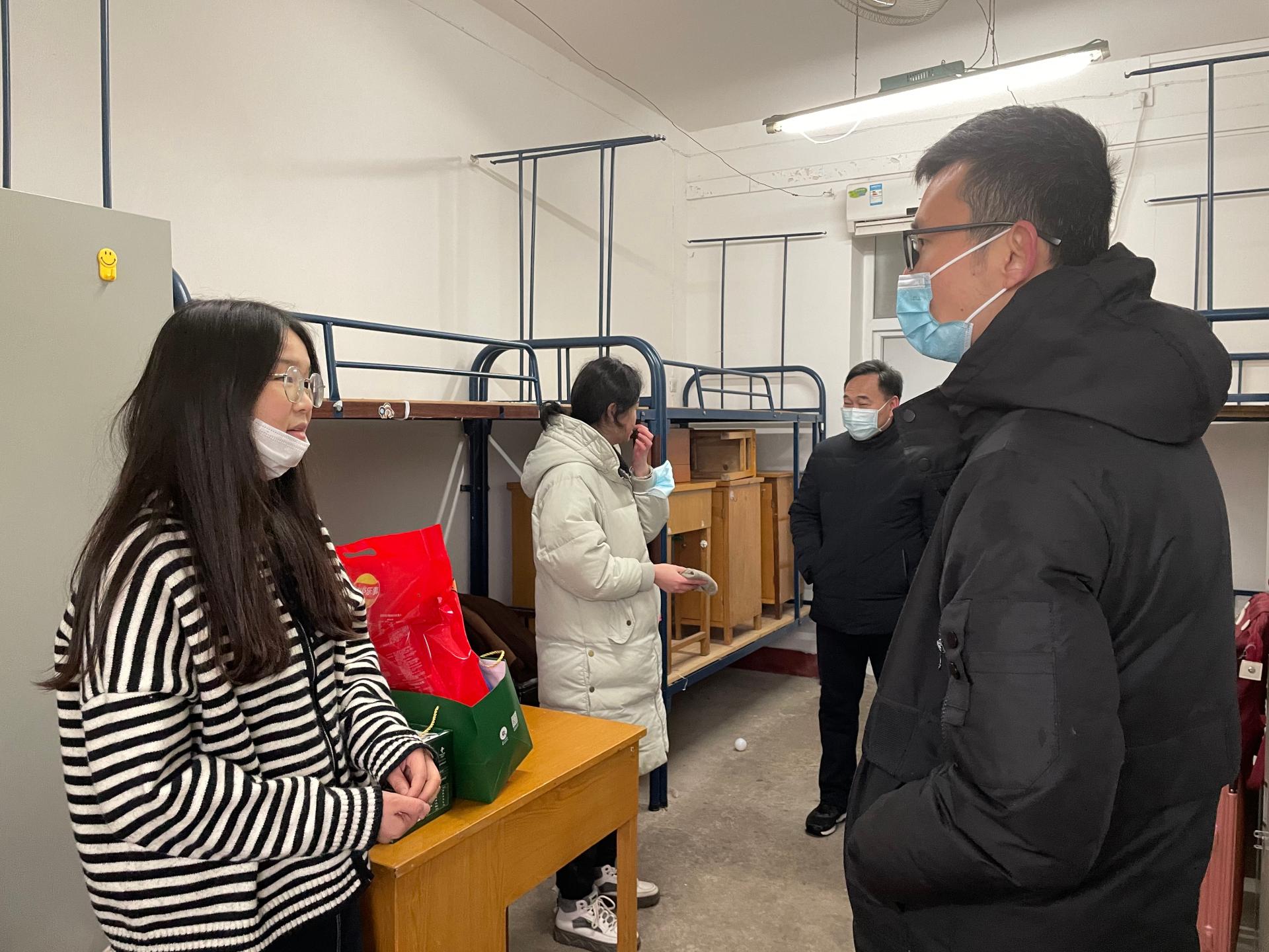 党委书记李素矿,党委副书记王海锋,中加合作办公室学生事务秘书耿婧前往南望山校区54栋、57栋学生宿舍看望春节留校的5名研究生,代表365体育投注