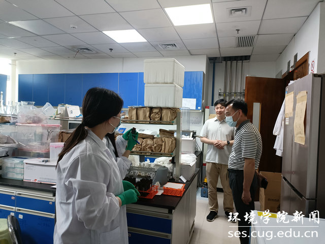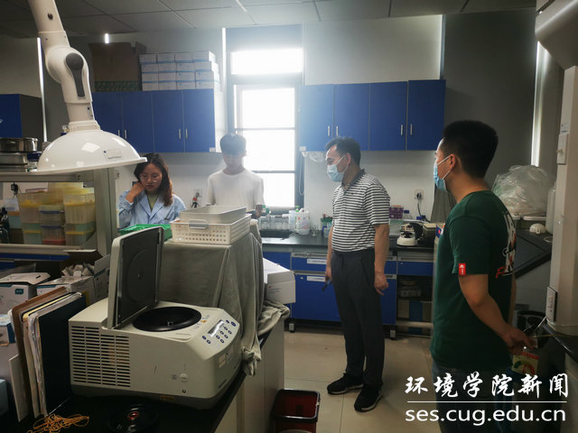 党委书记李素矿和辅导员赵恩民、孟庆达走访未来城校区环境楼实验室