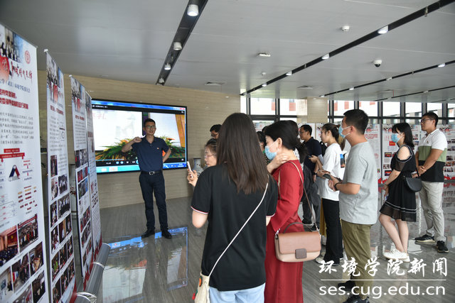 来宾参观党建资政育人和美丽中国课程思政实物资料