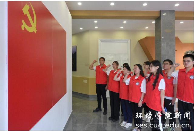 参观结束后,全体成员在纪念馆开展了“重温入党誓词”活动,他们在党旗下握紧拳头、凝神注目,重新宣读入党誓词,表达了传承红色文化,弘扬革命精神的使命和决心。