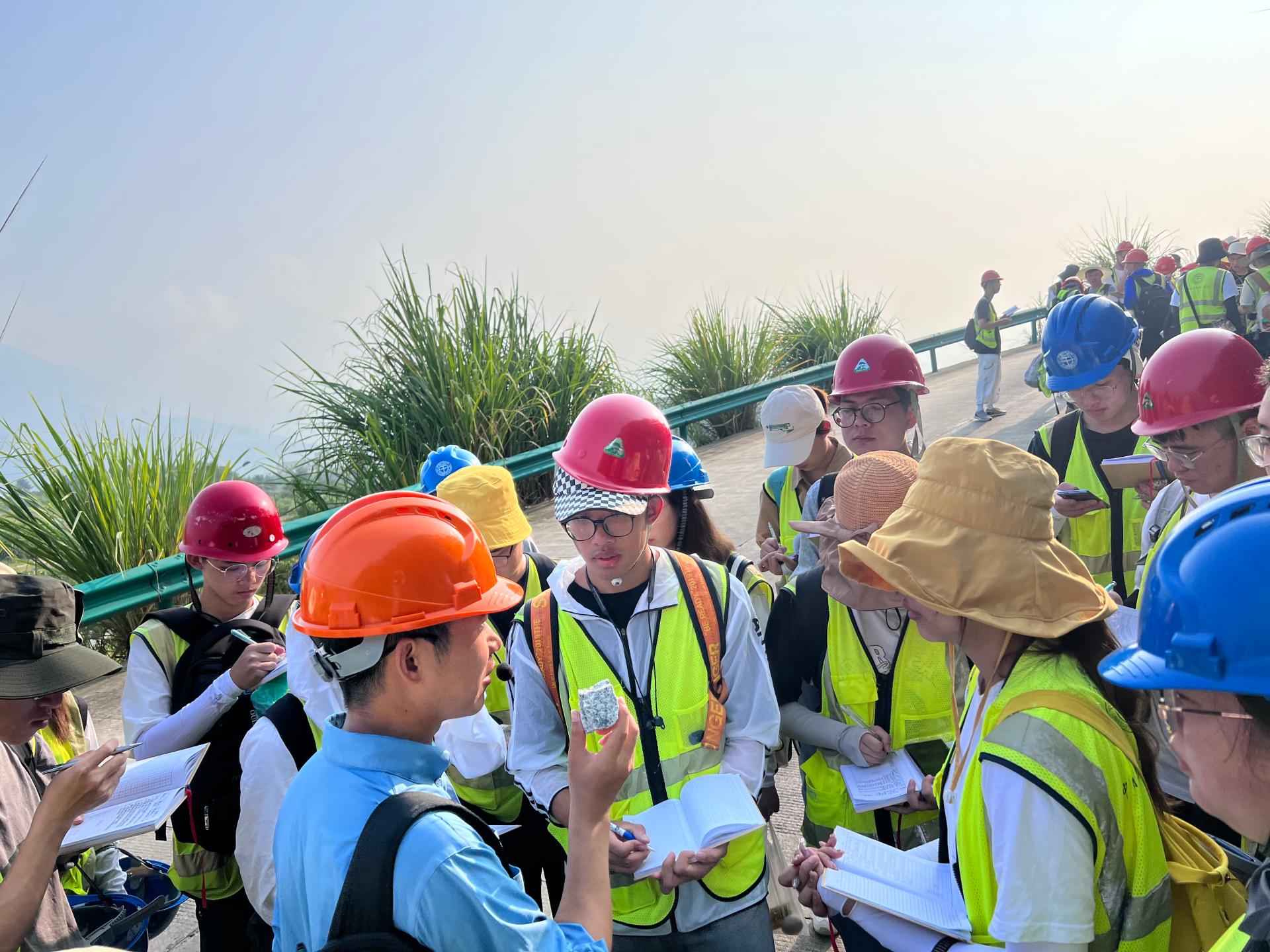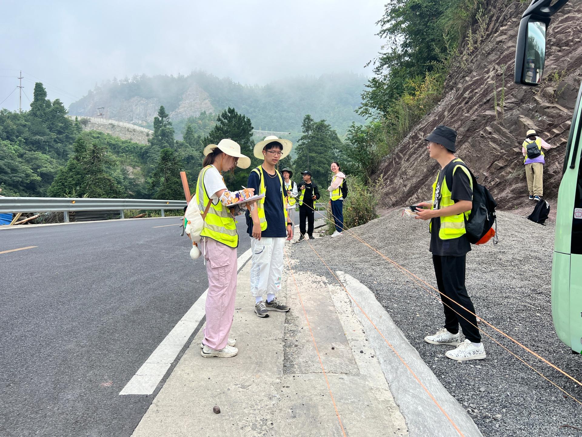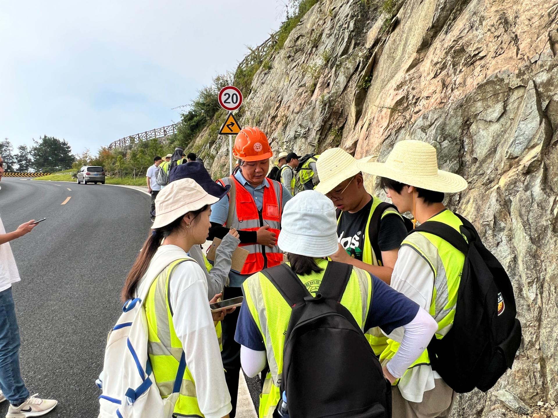 8月10日,李素矿一行参加芝茅公路踏勘和地层实测剖面野外实习路线。与水文与水资源专业041201、041202和045201z同学们一起听取黄琨老师对黄陵岩体的讲解,和同学们一起听王涛老师讲解如何开展莲沱组地层的实测剖面工作。并与带队老师和同学们亲切交流,询问同学们的学习收获和知识掌握情况,并认真倾听同学们的实习感受。他鼓励同学们,一定要重视野外实习实践,将理论学习在实践中检验,将所学知识应用于社会的生产实际中,为生态文明建设和环境事业的发展做出贡献。