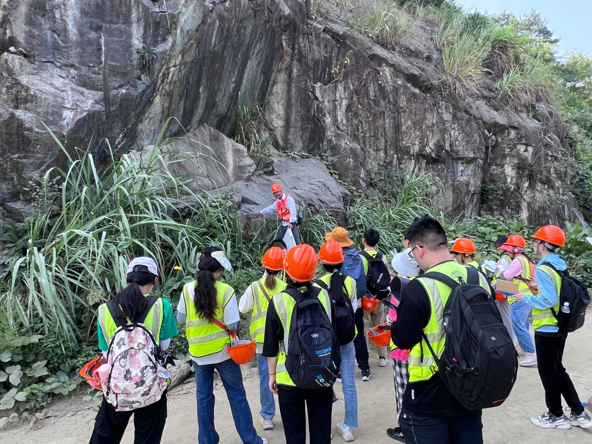 同学们在分辨岩石岩性