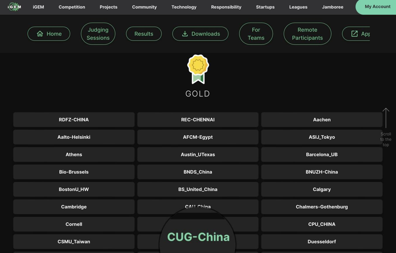 本科生团队“CUG-China”凭借着出色的成果斩获金奖,这也是中国地质大学(武汉)参赛团队首次参加该项比赛。同期获得金奖的还有剑桥大学、康奈尔大学、德州大学奥斯汀分校、北京大学、复旦大学、浙江大学等国内外知名院校。