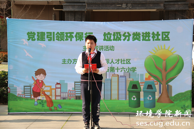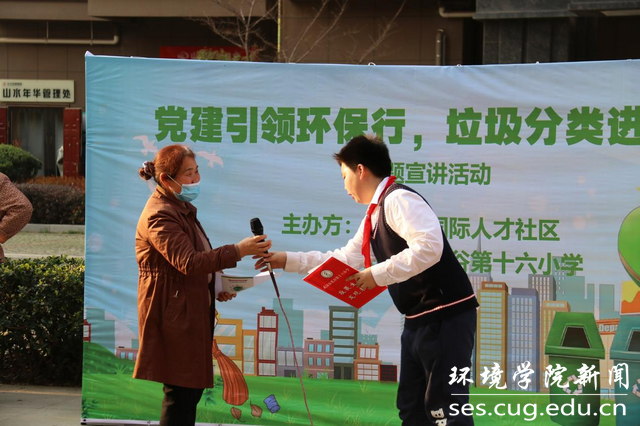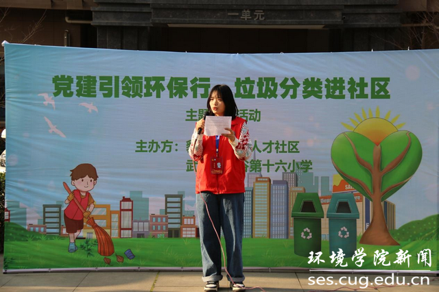 待十六小的同学们表演结束,bet365体育投注下载“张国旗班”志愿团研究生志愿者陆煜迪、刘丹丹、刘源分别以《何谓“低碳生活”》、《分类后的垃圾去了哪》及《垃圾分类与生态文明建设》为题进行总结宣讲,用生活中常见的环境问题为切入,向社区居民们详细地讲解了如何做好家庭垃圾分类、实行垃圾分类的意义等;而后循序渐进,倡议个人应将生态环境保护意识内化于心,与日常生活联系起来,引导群众正确投放各类生活垃圾,进一步增强了居民群众们的垃圾分类意识,使其能够更自发、自主地践行绿色低碳的生活方式。