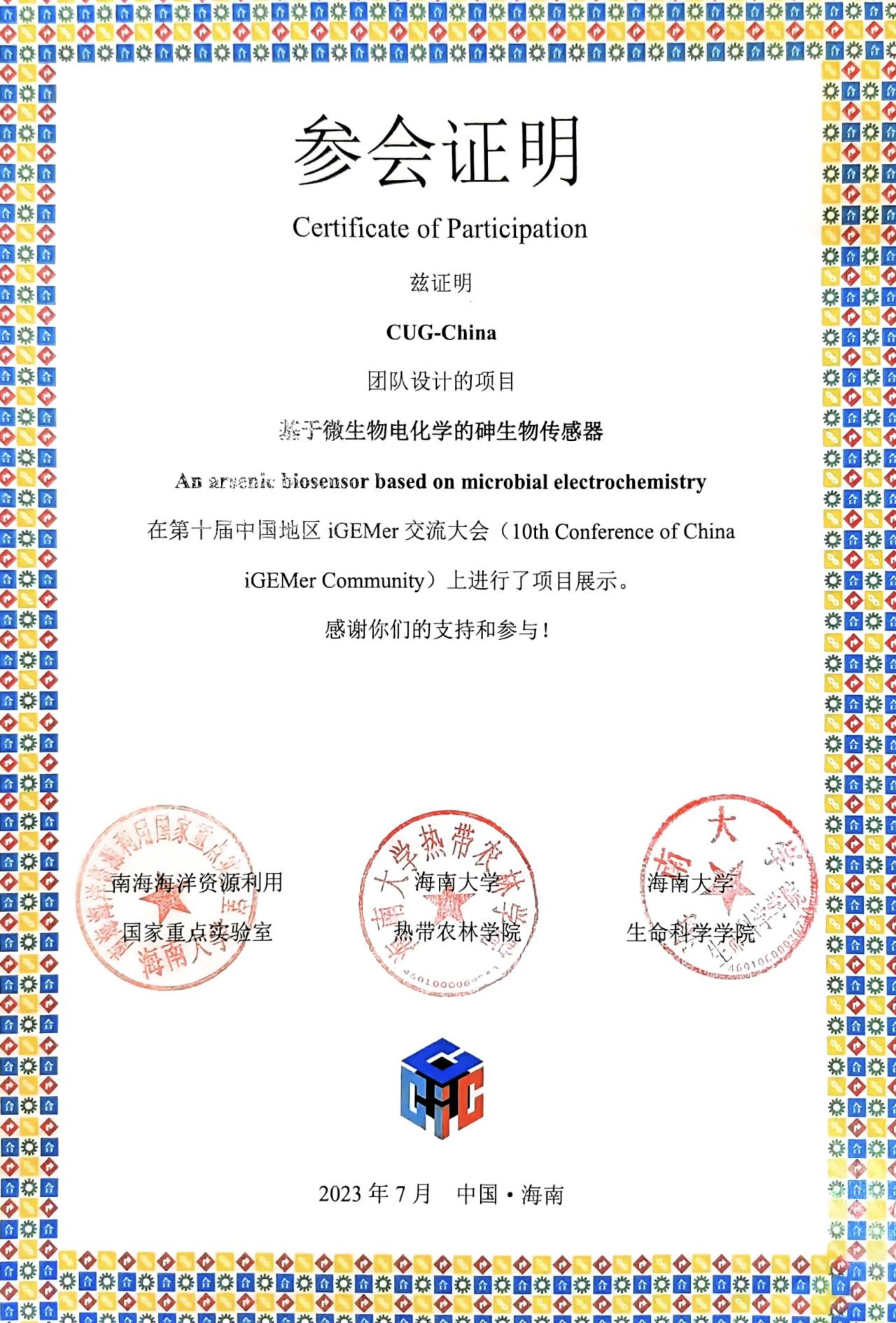“CUG-China”团队构建的电活性生物被膜生物传感器具有自给自足、成本低廉、敏锐度高的特点,使得该传感器的应用范围十分广泛,甚至可以进行原位水质检测,有望改善传统砷浓度检测方式复杂、无法就地监测的问题。项目具体内容可访问//2023.igem.wiki/cug-china/。