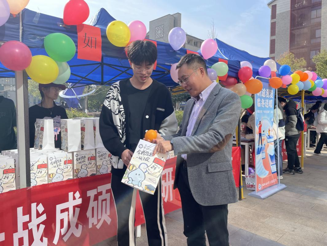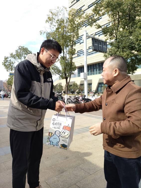 党委书记姜明敏为考研学子发放考研加油包并进行亲切慰问,他叮嘱同学们既要全力以赴保持良好的学习状态,也要劳逸结合保持身心健康,要按照既定的安排合理备考,不骄不躁,持续发力,坚持到最后,取得满意的成绩。