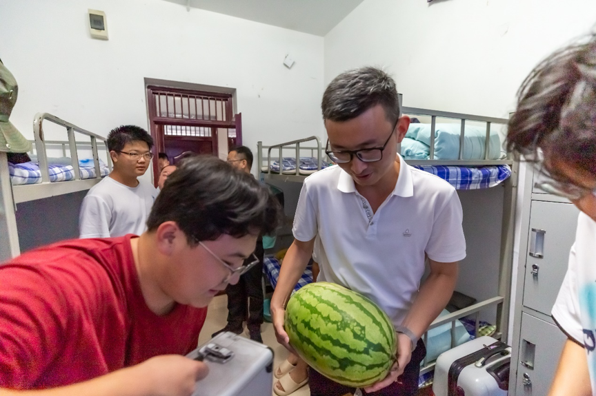 领导一行前往宿舍看望实习学生。他们与同学们亲切交谈,关心了解同学们实习生活情况,交流实习体会感悟,他叮嘱同学们一定要注意人身安全,做好防暑降温,并勉励同学们认真学习、克服困难,掌握扎实的专业本领,并为师生送去定制地质书包、西瓜等慰问品。