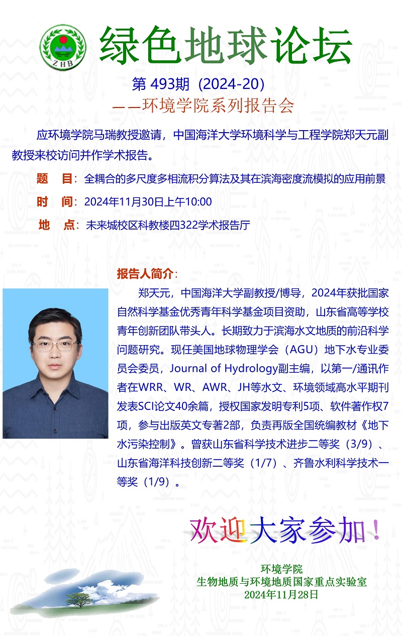 中国海洋大学环境科学与工程365体育投注 郑天元副教授学术报告