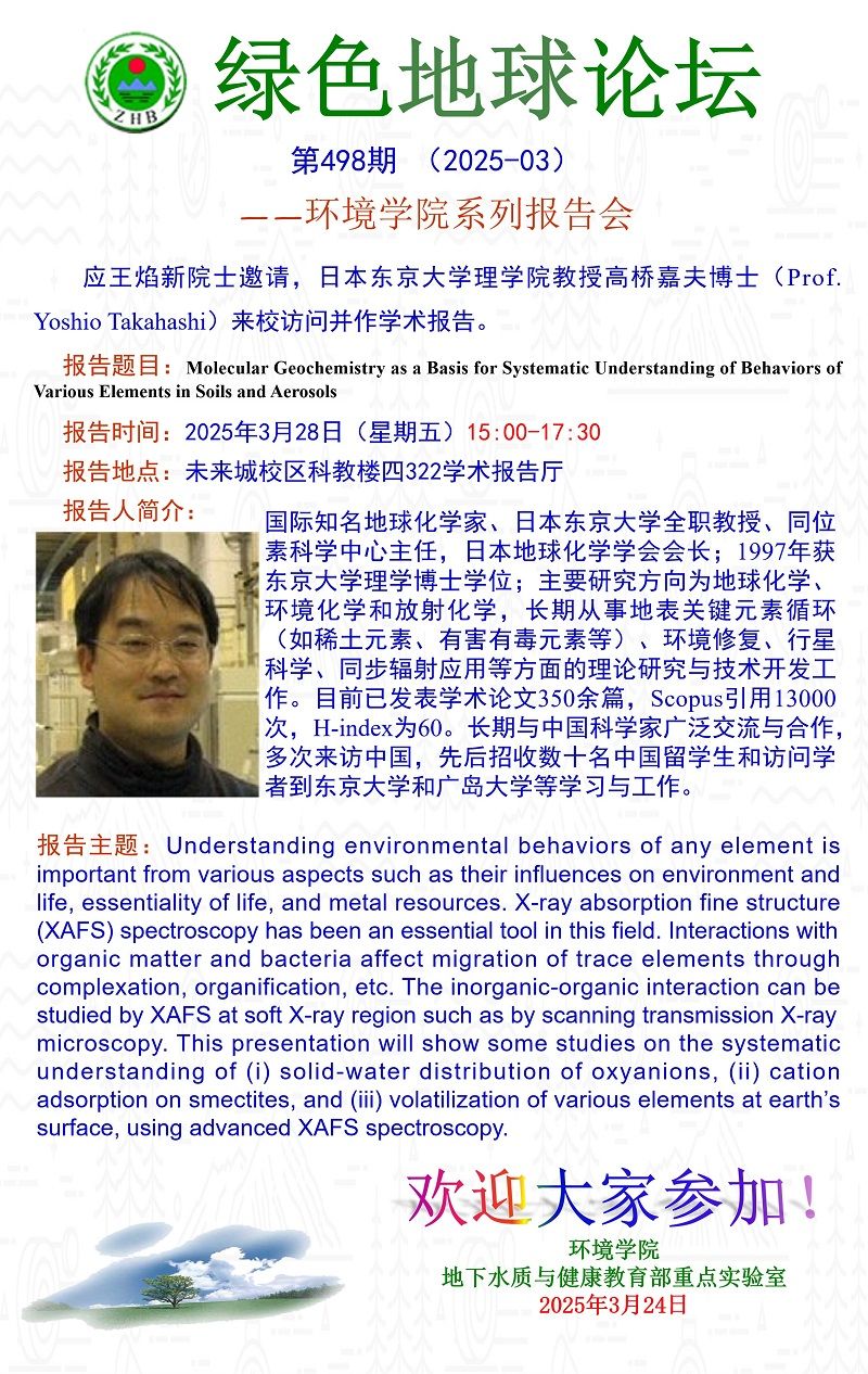 日本东京大学理365体育投注 教授高桥嘉夫博士(Prof. Yoshio Takahashi)学术报告