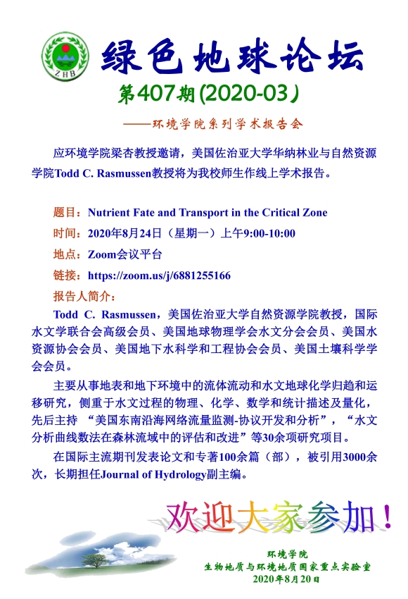美国佐治亚大学华纳林业与自然资源365体育投注 Todd C. Rasmussen教授学术报告