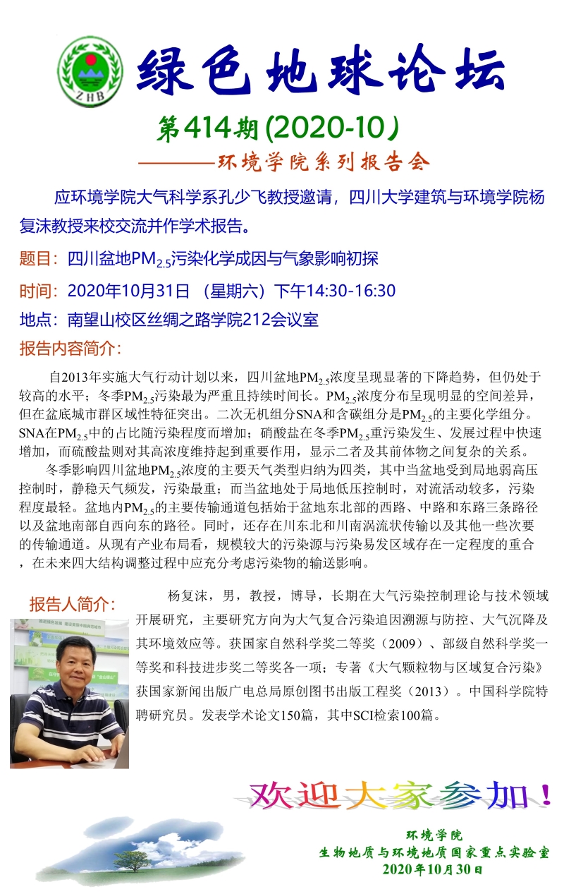 2020年环境水文地质前沿系列讲座(二)