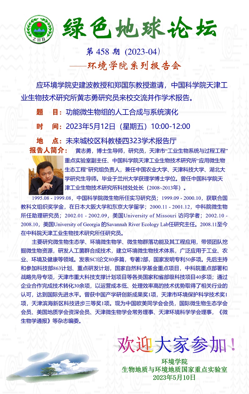中国科365体育投注 天津工业生物技术研究所黄志勇研究员学术报告