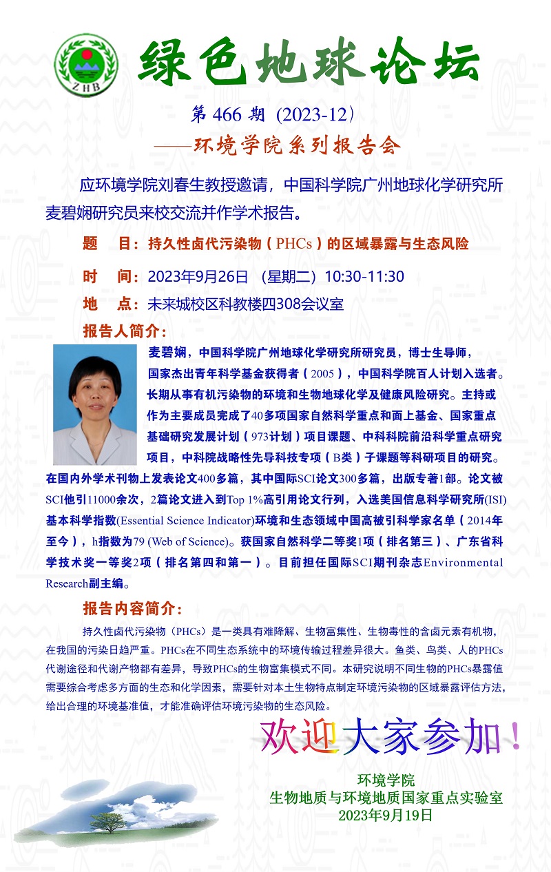 中国科365体育投注 广州地球化学研究所麦碧娴研究员学术报告