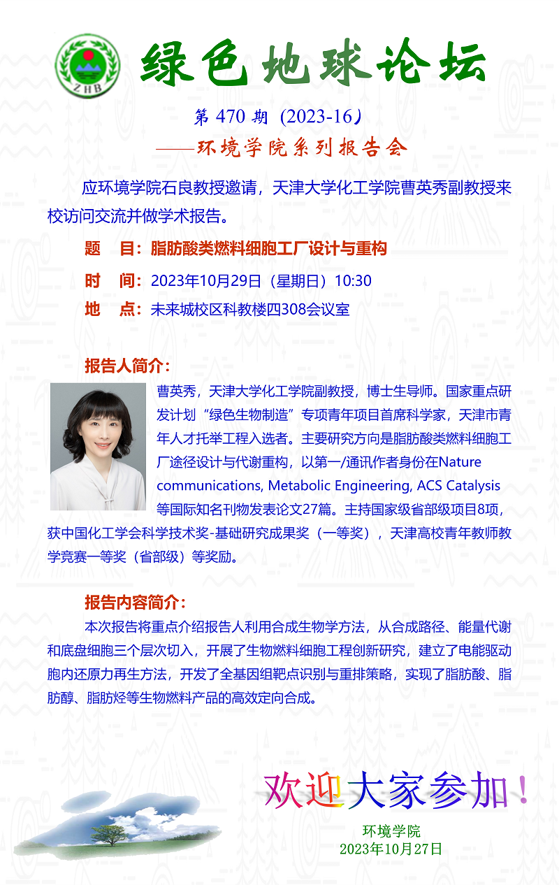 天津大学化工365体育投注 曹英秀副教授学术报告