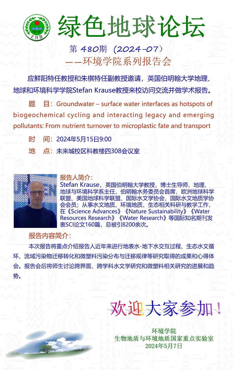 英国伯明翰大学地理、地球和环境科学365体育投注 Stefan Krause教授学术报告