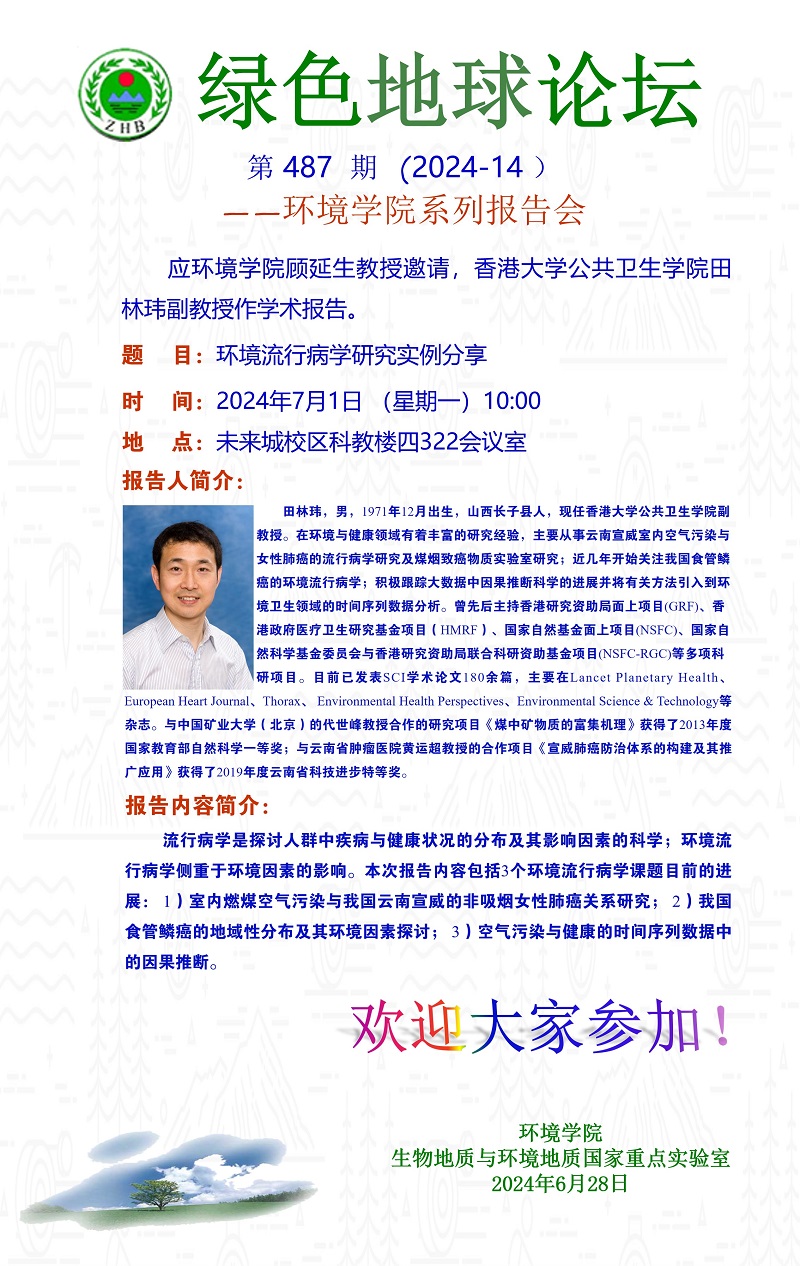 香港大学公共卫生365体育投注 田林玮副教授学术报告