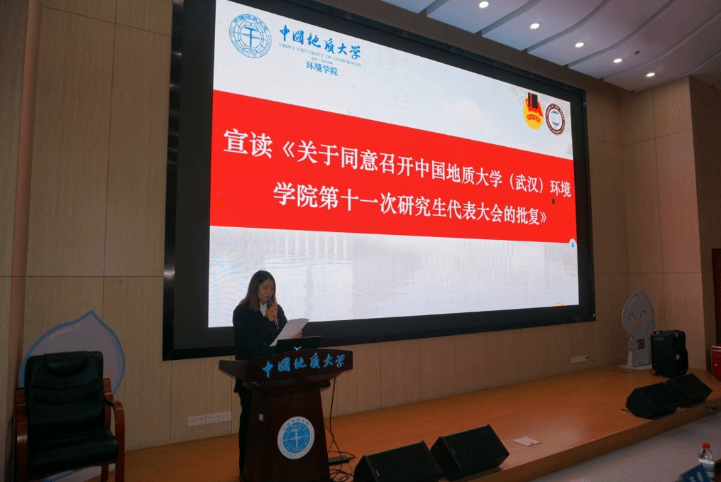 校研究生会主席团成员陈薇宣读《关于同意召开365体育投注-bet365体育投注下载 第十一次研究生代表大会的批复》。