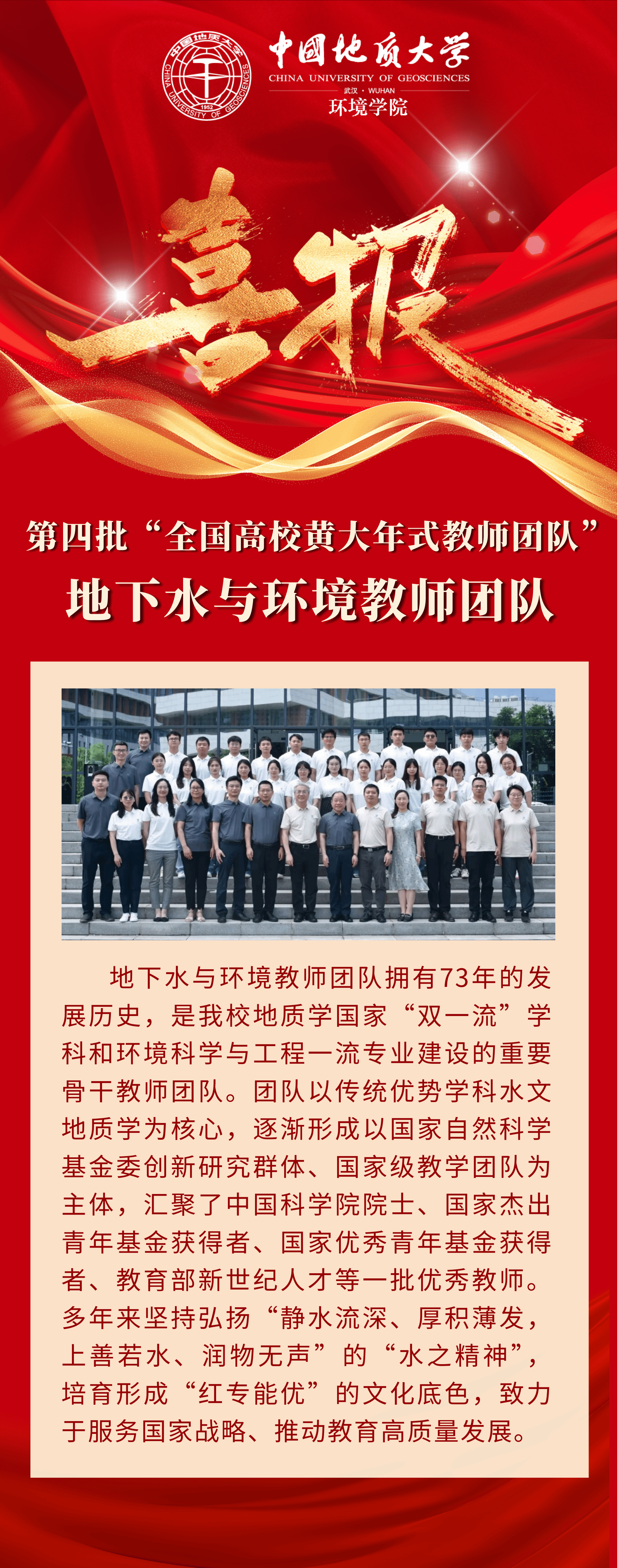 (通讯员/编辑申墁烨)近日,教育部公布第四批“全国高校黄大年式教师团队”创建示范活动入围名单,bet365体育投注下载地下水与环境教师团队入选。