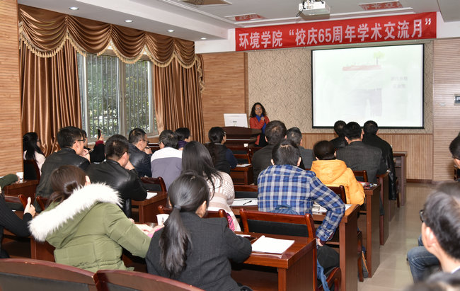 王红梅副院长介绍了365体育投注 “校庆65周年学术交流月”活动基本情况,并做了《鄂西洞穴系统地质微生物的时空分布及其古环境意义》的学术报告。