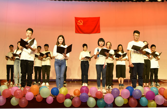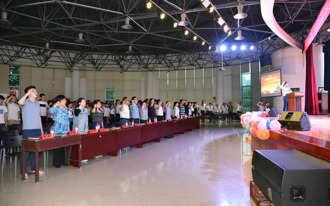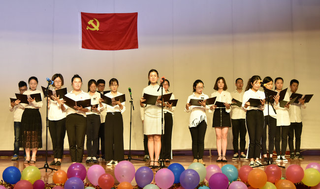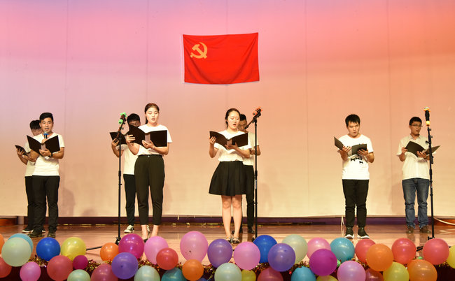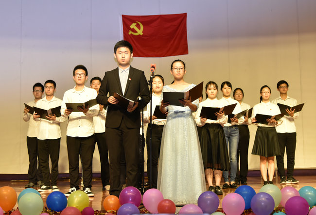 全体师生在朱继的带领下重温入党誓词。
