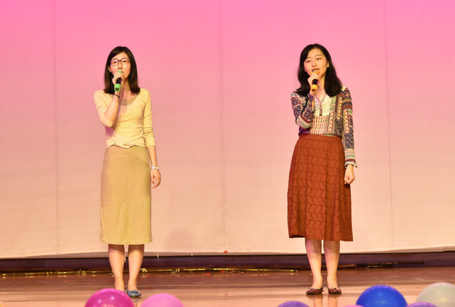 教工党支部的严冰和何靓老师与学生互动,带来歌曲《Sometimes When We Touch》。