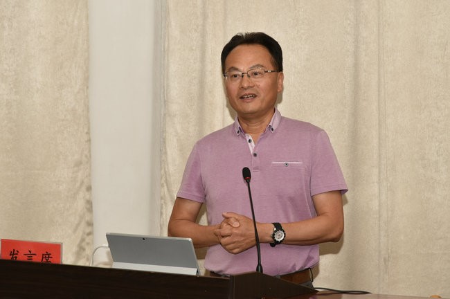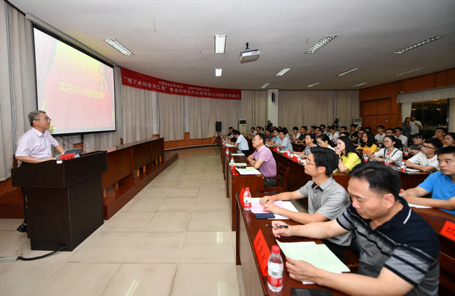 王焰新校长讲话。首先代表学校和全体师生欢迎“地下水科学与工程”专业中外合作办学项目2018级新同学的到来。他说,中国地质大学是一所仰望星空、脚踏实地、追求卓越的高等学府,在66年的办学实践中,地大人弘扬“艰苦朴素,求真务实”校训精神,坚持“谋求人与自然和谐发展”的价值观,勇于创新、不懈奋斗,取得了累累硕果。他简要回顾了我校国际化办学的历程,指出,学校与滑铁卢大学在“地下水科学与工程”专业的合作办学是强强合作的重要成果。他结合自己在滑铁卢大学的求学经历,强调“地下水科学与工程”专业中外合作办学要体现“四融合”,即跨学科专业交叉融合、教学与科研实践融合、创新创业教育与专业教育融合和办学与国际化融合。希望同学们要树立信心、勤奋学习、拓展国际视野,争做中外交流的使者。