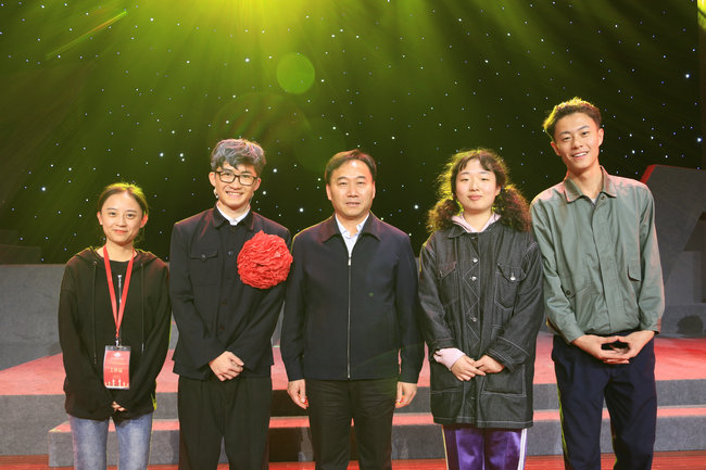 365体育投注 党委书记李素矿看望参与演出的环境学子(从左至右依次为张雨瑶、郄泽峰、李素矿、胡可涵、原浩)