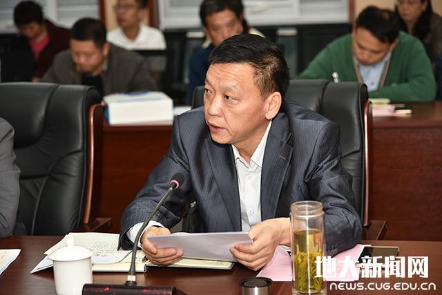 职能部门代表发言。党委宣传部部长胡守庚从立足发挥地大文化育人优势,浓厚“三全育人”氛围;对标“严在地大”,激发“三全育人”内生动力;瞄准“五个聚焦”,推动“三全育人”纵深发展等方面提出推进学校“三全育人”综合改革创新发展的建议和举措。