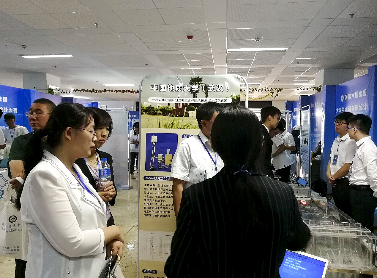 选送三支代表队代表我校参赛。通过作品演示、分组答辩、答辩复赛等环节,邱洋、邓芳、樊佩宽和史秋云设计制作的作品《一种同时测定原状土渗透系数、有效孔隙度和给水度的仪器》(指导教师:潘欢迎、马传明)获一等奖,杨晨博、张心阳、覃霄、杨安琪和陈宇龙设计制作的作品《一种全自动雨水综合利用系统》(指导老师:马传明 潘欢迎)获二等奖,王懿洁、栗倩倩、郑智、于茂君和张蝶设计制作的作品《基于物联网大数据平台的岩溶隧道水文预报系统的研发及应用》(指导教师:马传明、潘欢迎)获三等奖。