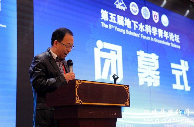 闭幕式上,中国农业大学任理教授、吉林大学赵勇胜教授和南京大学吴剑锋教授代表点评专家分别对地下水动力学会场、地下水环境会场和研究生会场总体情况进行了点评。马腾院长对本届论坛进行了总结发言。