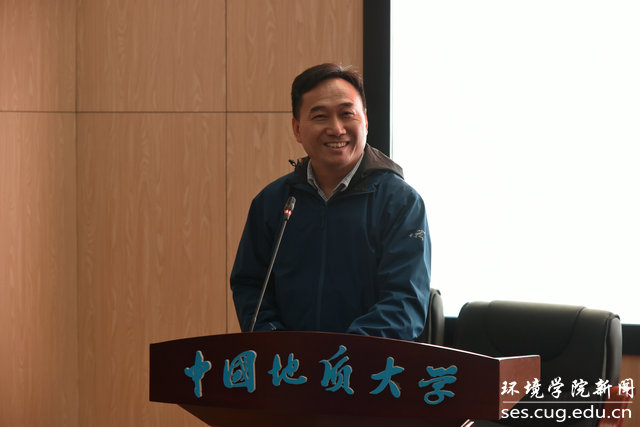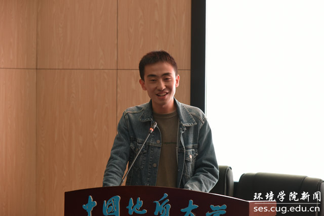 实习教师代表陈伟结合学生时期实习经历发表感想。从学生到教师、从教室到野外,身份的转变、场地的转变,是专业教学的延续,更是校训精神的体现。野外实习对我们的认知有重大意义,同学们的努力就是对老师最大的激励。