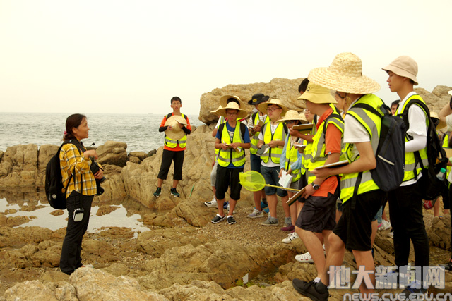 王红梅教授(左一)在北戴河带本科生开展野外实习