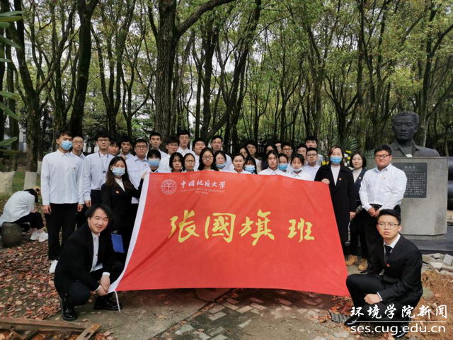 举行张国旗塑像清明祭扫活动,辅导员李平、“张国旗班”团支部全体成员参与活动。薛晴文主持活动。