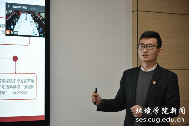 “张国旗班”党支部书记熊水生从党员的身份谈起,认为张国旗学长用实际行动践行了共产党员“随时为党和人民牺牲一切”的誓言,表示会在张国旗精神感召下,励志争做新时代的生态环保铁军。